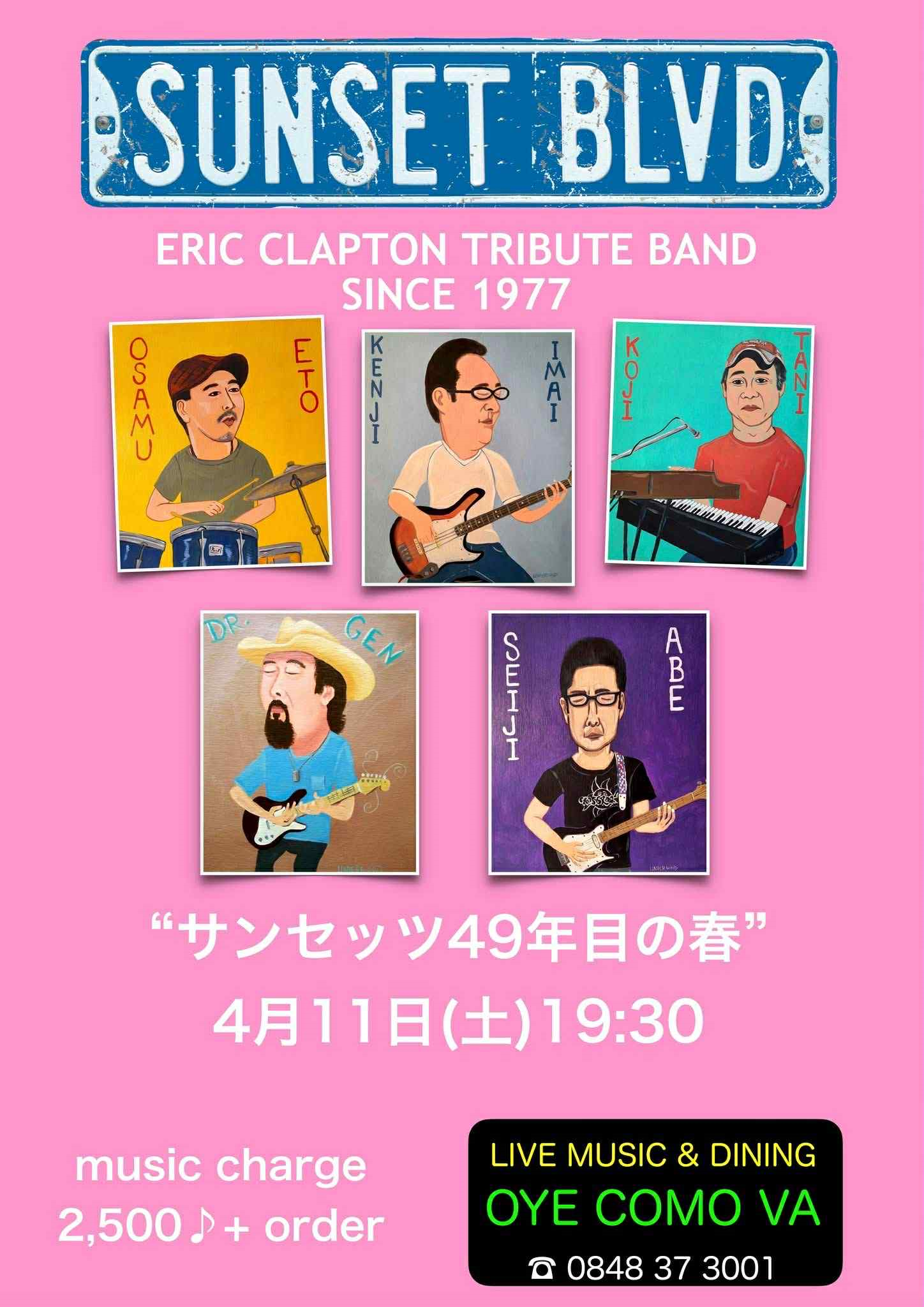 4月 11,土曜日 @ 7:30 PM - 10:00 PM SUNSET BLVD Oye como va 広島県尾道市久保1-5-18 SUNSET BOULEVARD ERIC CLAPTON … 続きを読む »SUNSET BLVD